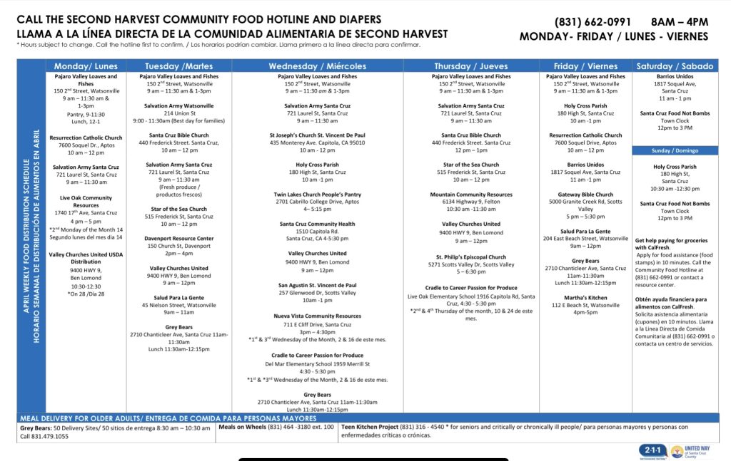 • Nuevo Centro de Voluntarios del Condado de Santa Cruz: 831-427-3435 (Solamente personas mayores de bajos ingresos)